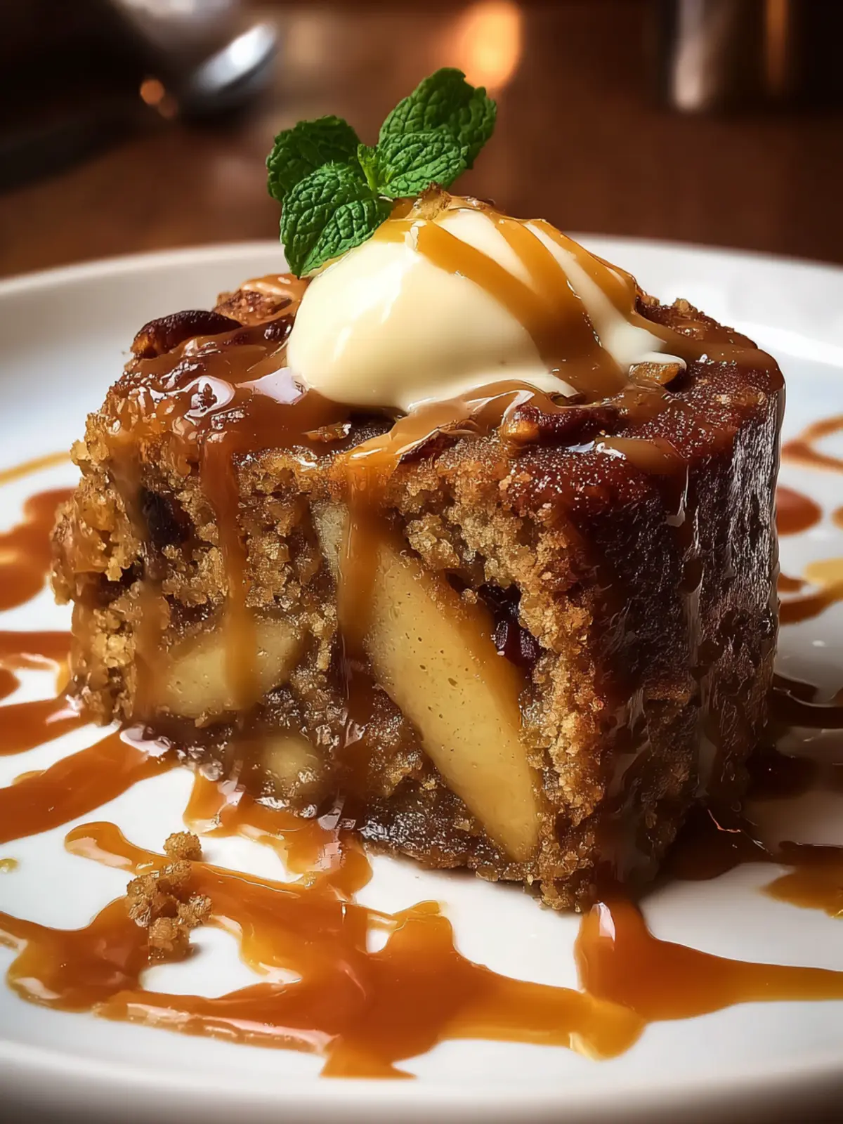 Apple Date Cake: Indulgent Chai Pudding with Warm Caramel Bliss