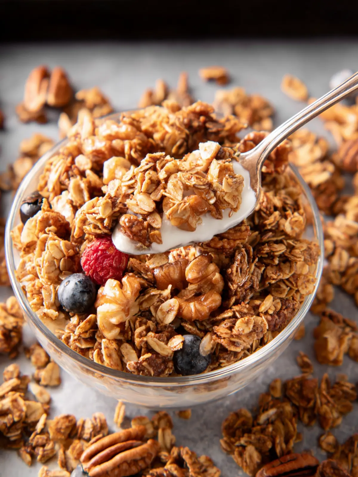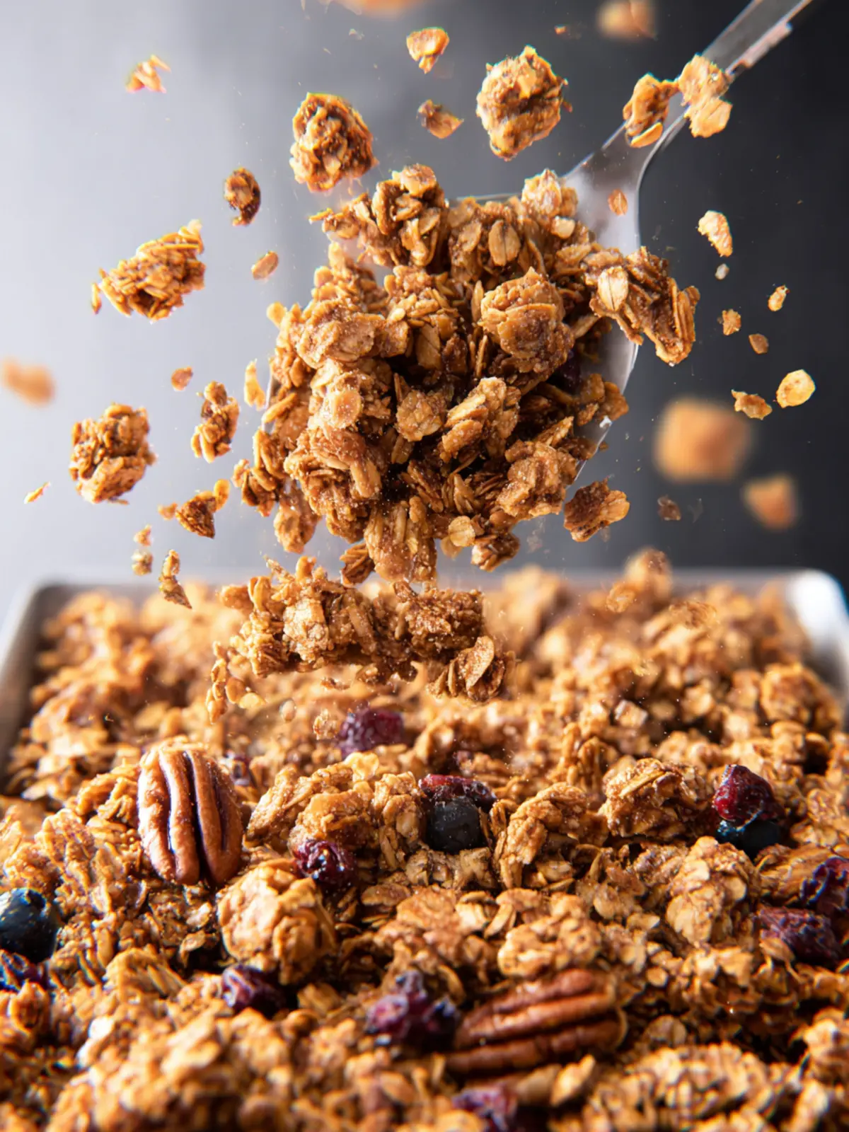 The beauty of this recipe lies in its versatility. Whether you’re a fan of almonds, walnuts, or pumpkin seeds, customizing your granola is a breeze. You can easily change your nut combinations or add in some dried fruits after baking for an extra burst of flavor.