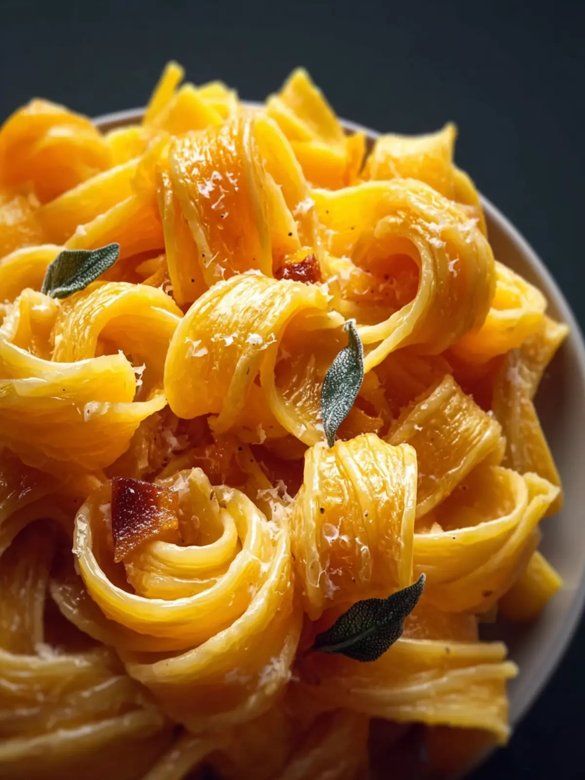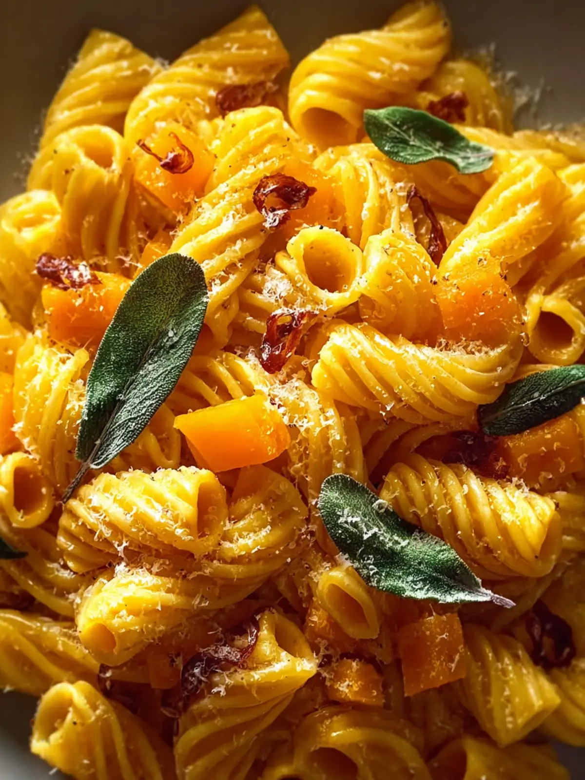 A delicious butternut squash pasta dish with sage and parmesan.