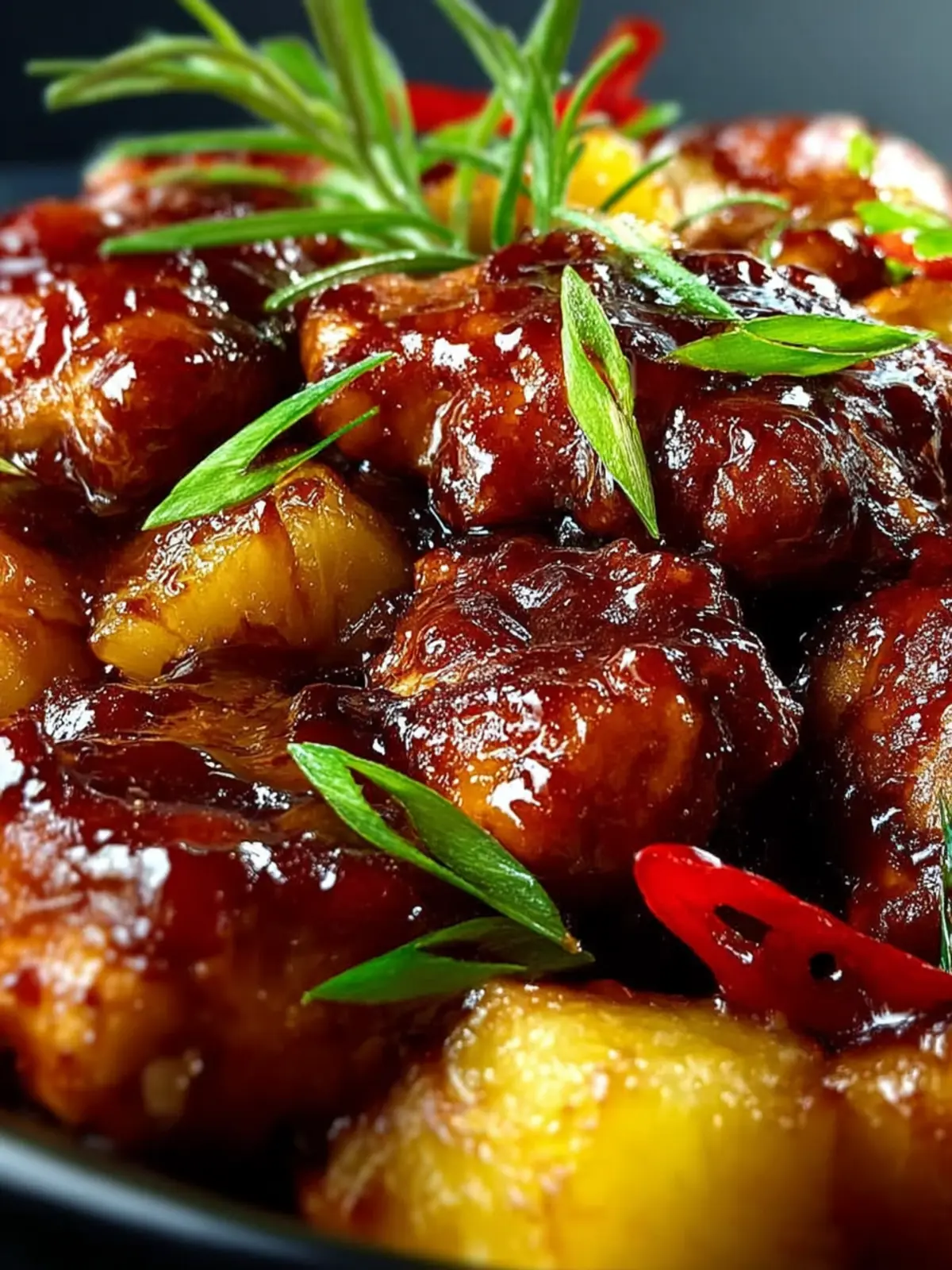 This sweet and tangy dish combines chicken with pineapple and a flavorful sauce for a delicious meal.