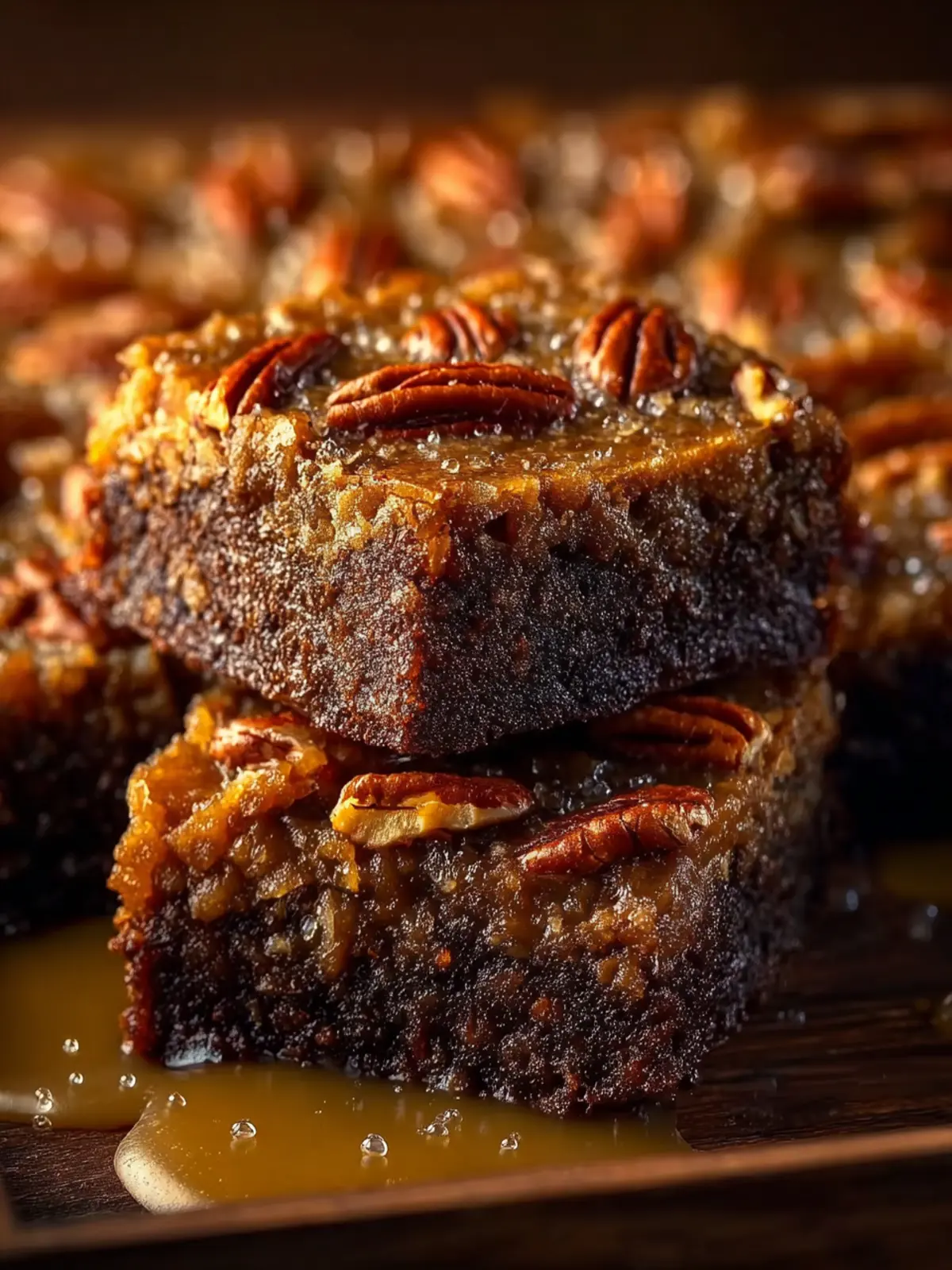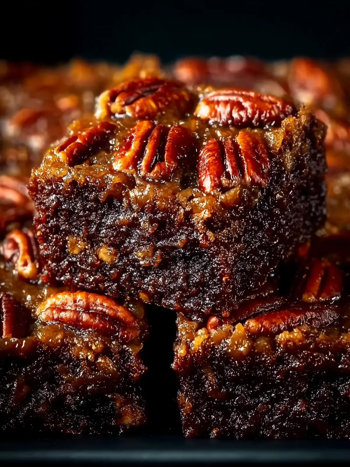 • Rich Chocolate Base: The fudgy brownie layer is a delightful canvas for the sweet pecan topping. This base does more than just hold the topping; it’s a chocolate lover’s dream come true.