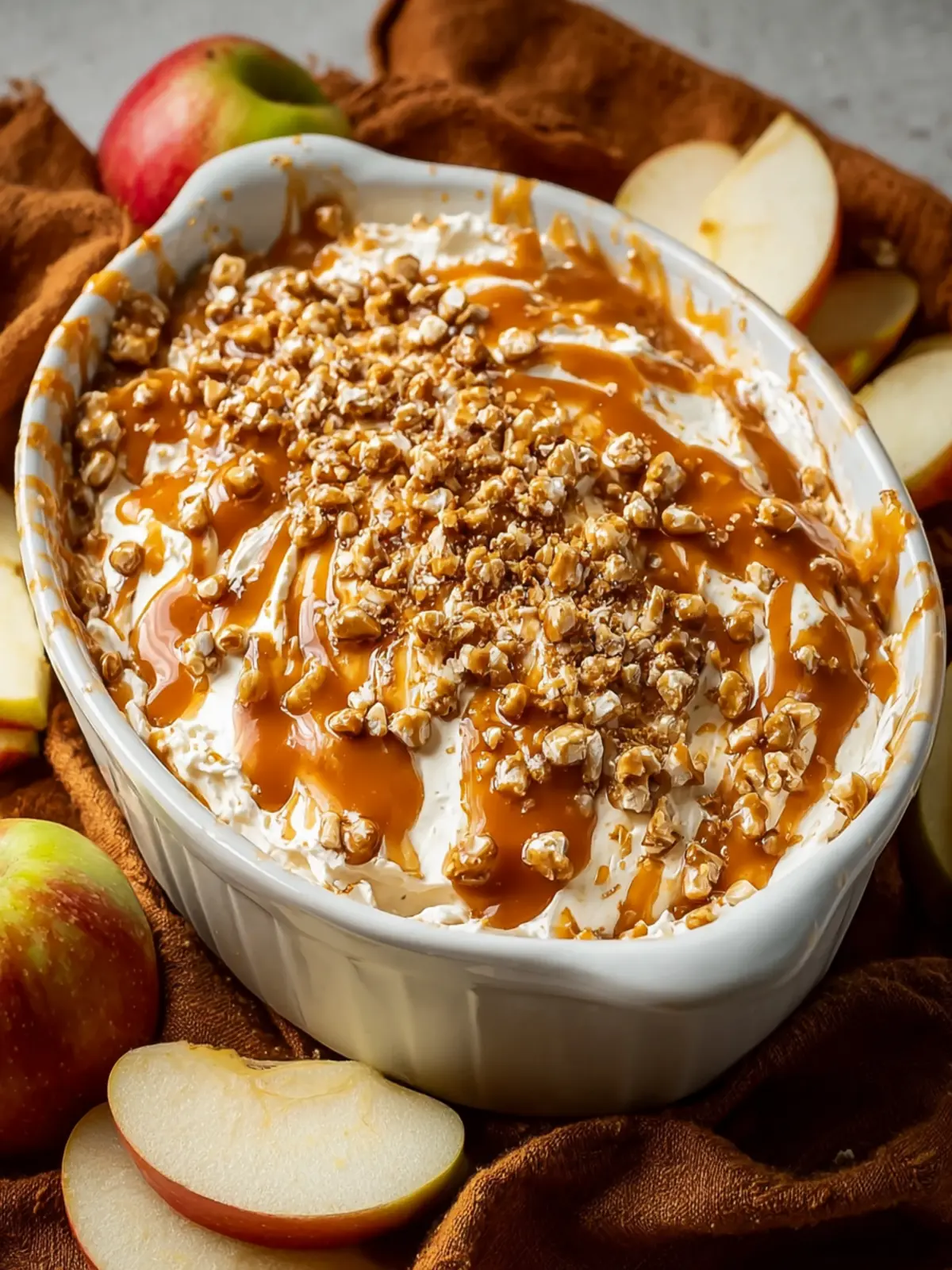 Apples: Fresh, crisp apples provide the perfect vehicle for this creamy dip. Honeycrisp and Granny Smith varieties work beautifully, balancing sweetness with a bit of tartness.