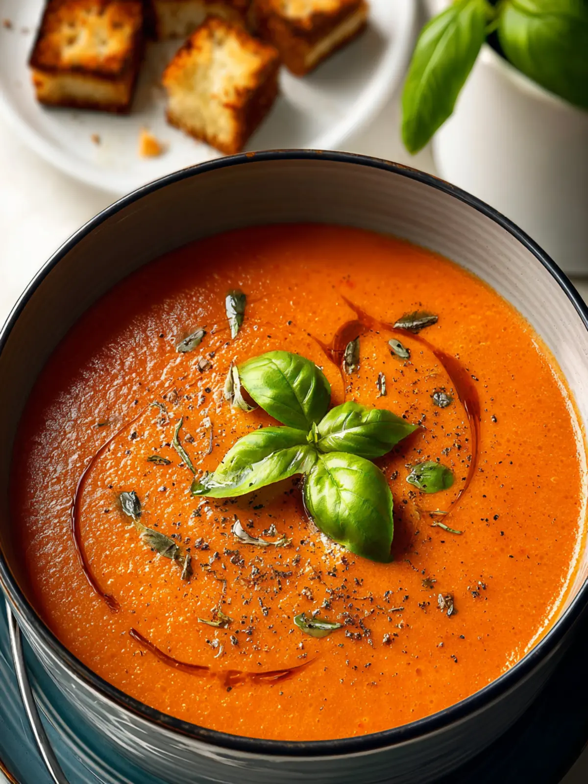 What makes this soup even more appealing is its health-conscious ingredients. Packed with fresh tomatoes, garlic, and basil, it’s loaded with vitamins and antioxidants. The addition of cream provides that velvety texture without overwhelming the health benefits.