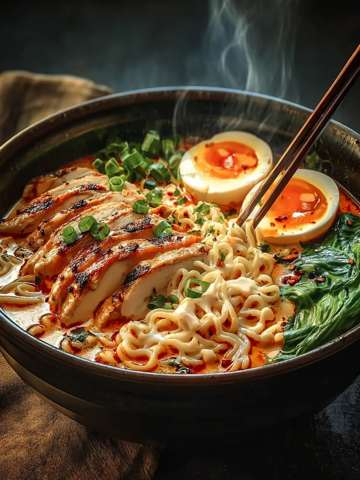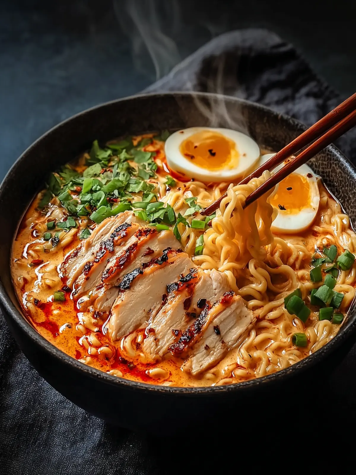 If you’re feeling particularly hungry, why not add some extra protein? Toss in some sliced tofu, crispy chicken skin, or even a soft-boiled egg for that deliciously gooey yolk. This not only enhances the flavor but also provides heartiness to your Fiery Chicken Ramen.