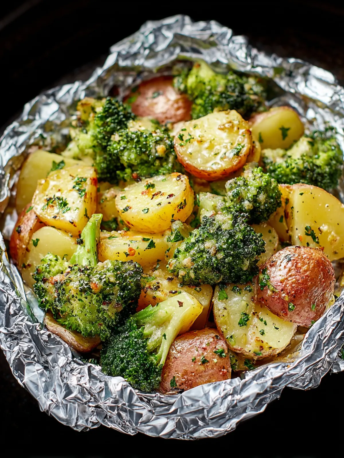 A delicious and easy recipe for foil pack broccoli and baby potatoes, perfect for a quick meal.