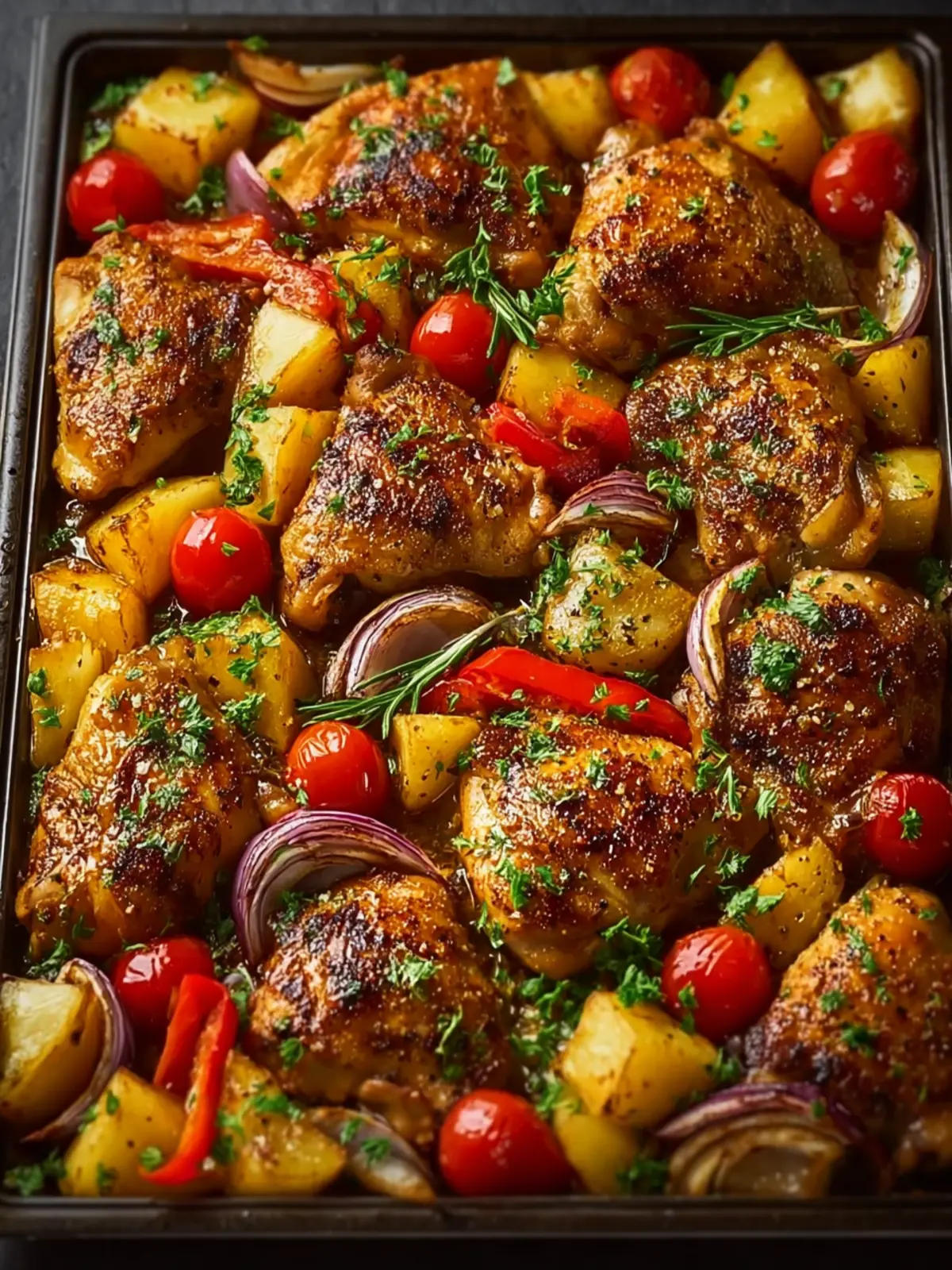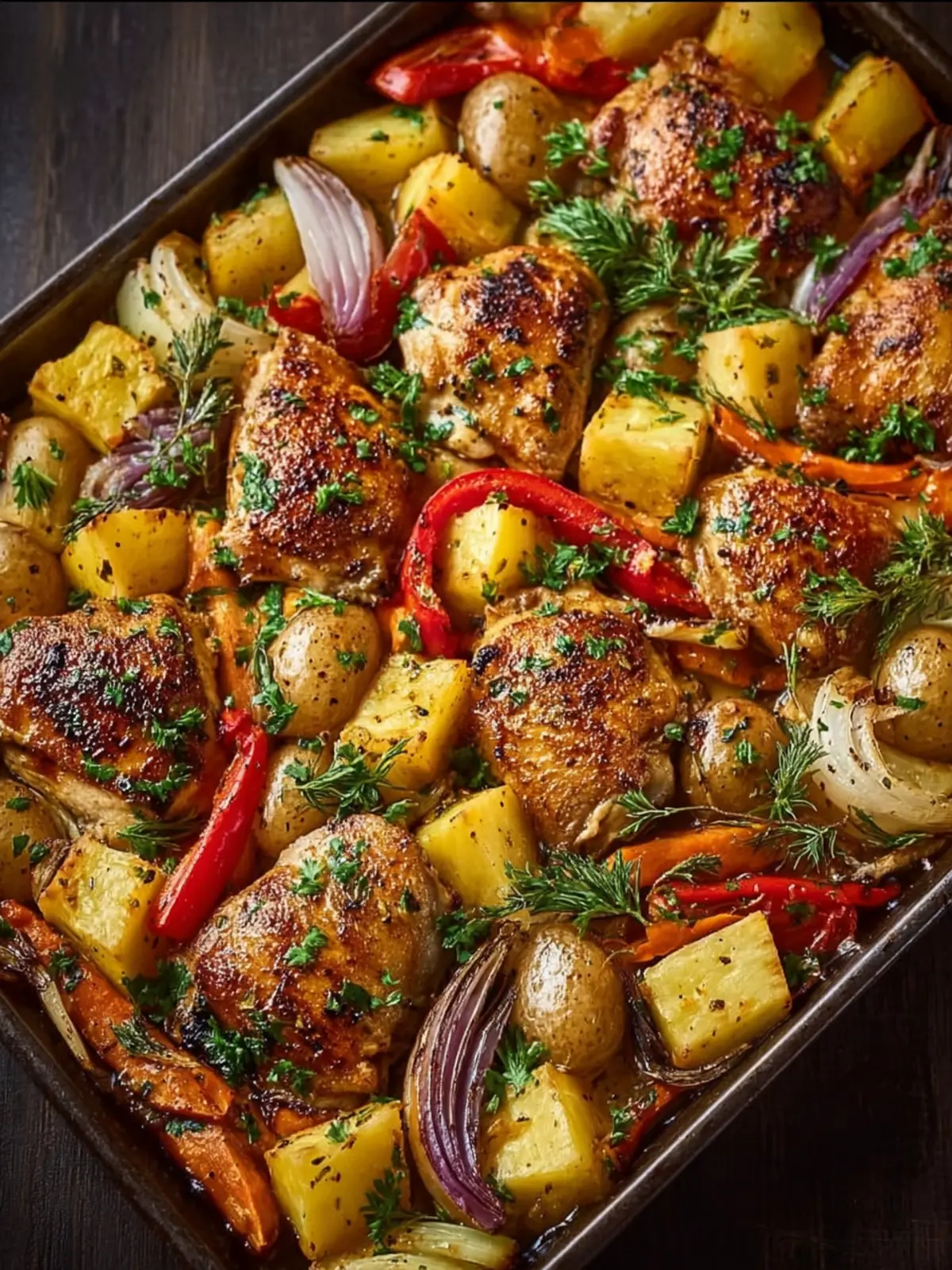 - Bake for 20-25 minutes, or until the chicken is cooked through and the vegetables are tender and slightly caramelized.