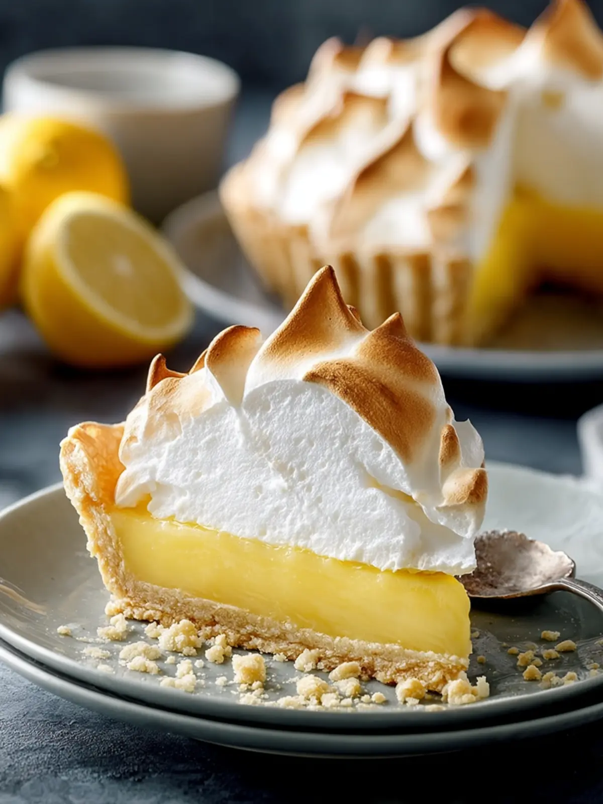 A delicious and tangy lemon meringue pie made with fresh lemons and a crispy graham cracker crust.