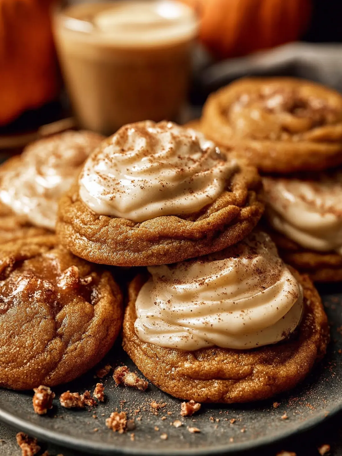 For a creative twist, consider adding a dollop of pumpkin spice latte-flavored cream cheese frosting on top of the cookies after baking. This frosting can be whipped together easily with softened cream cheese, powdered sugar, and a bit of instant coffee for that classic espresso note.