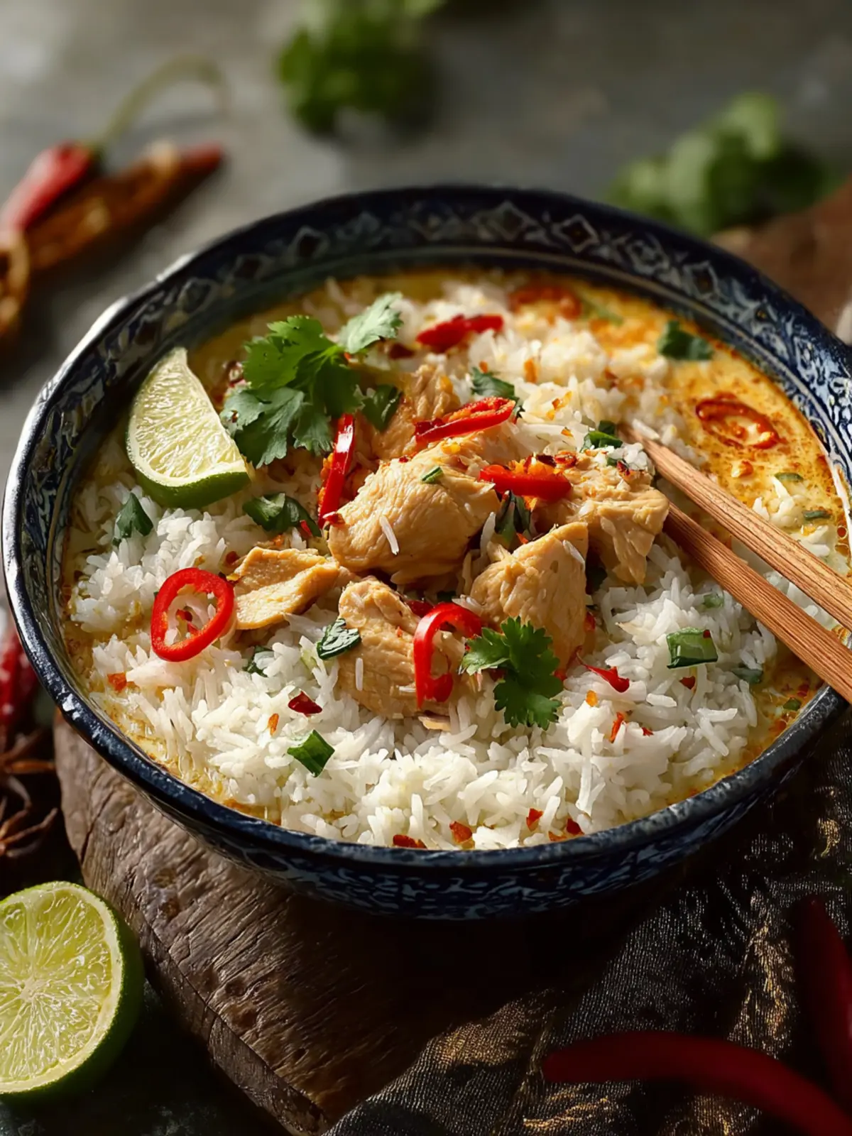 Nutritious Ingredients: Featuring lean chicken, coconut milk, and wholesome rice, this dish balances comfort with nutrition, helping you fuel your busy lifestyle without sacrificing health.