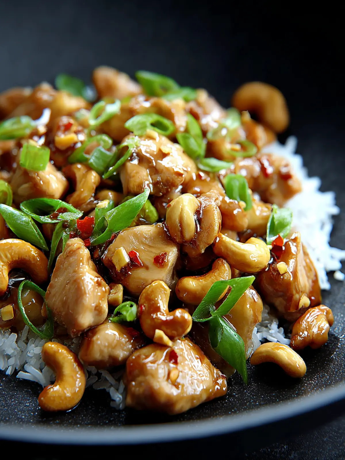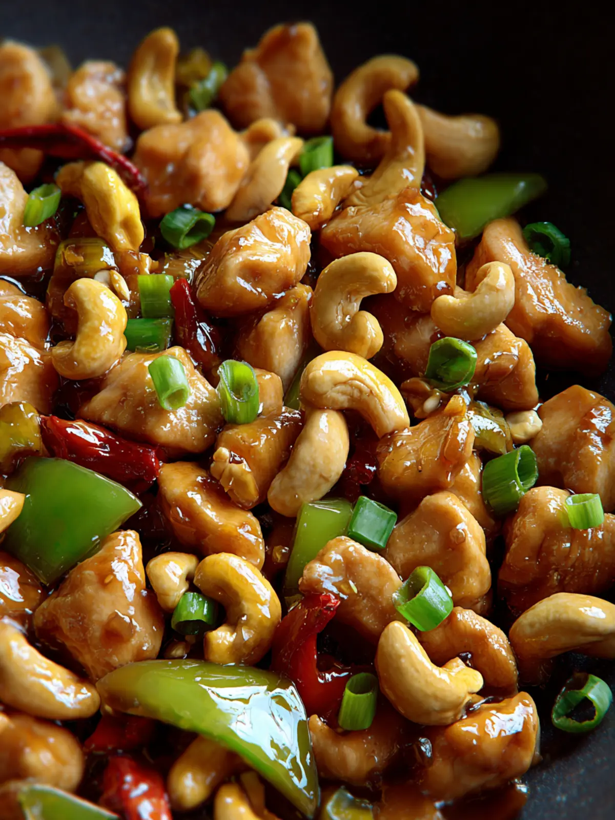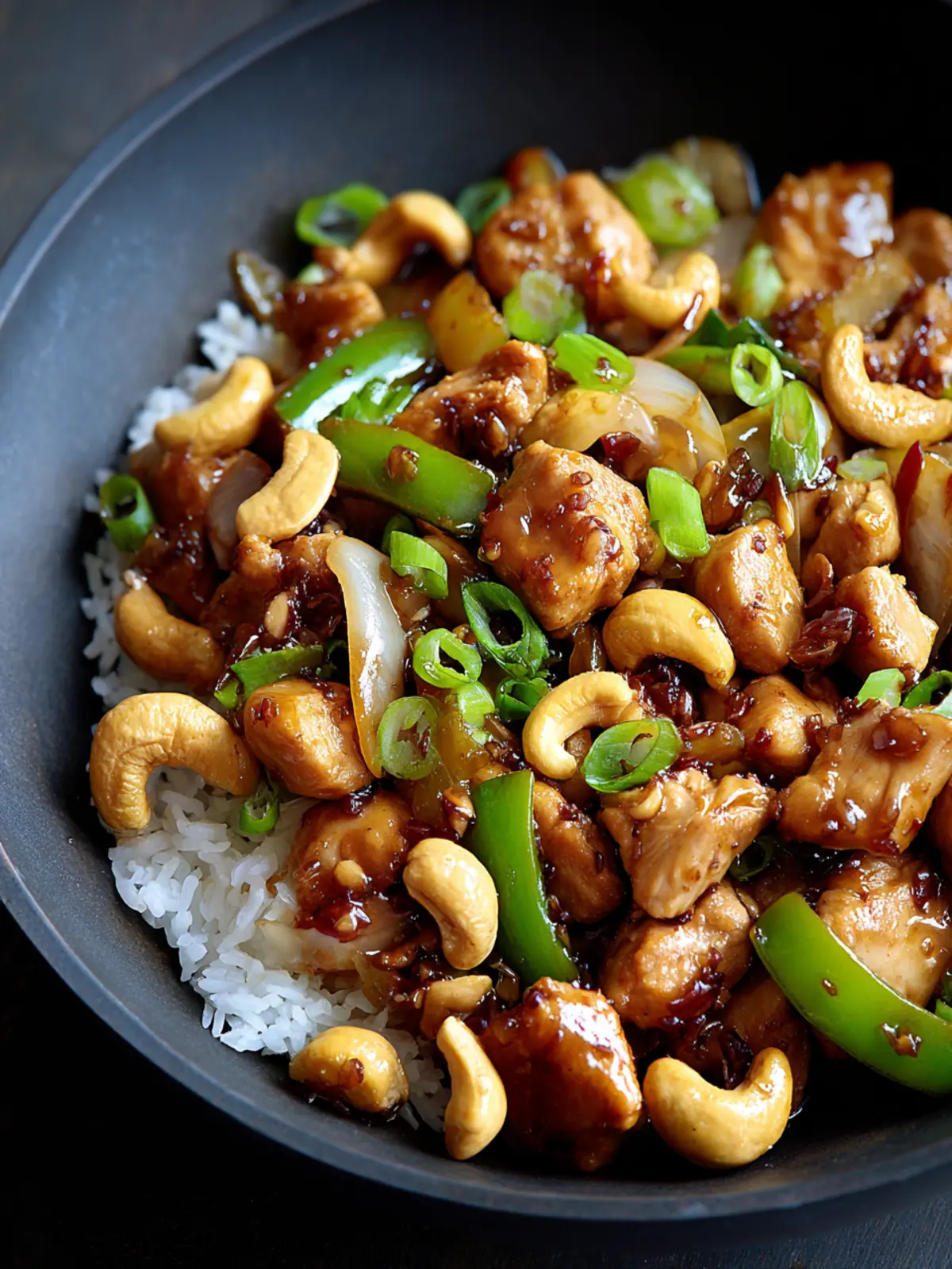 A flavorful stir-fry featuring tender chicken, crispy vegetables, and crunchy cashews.