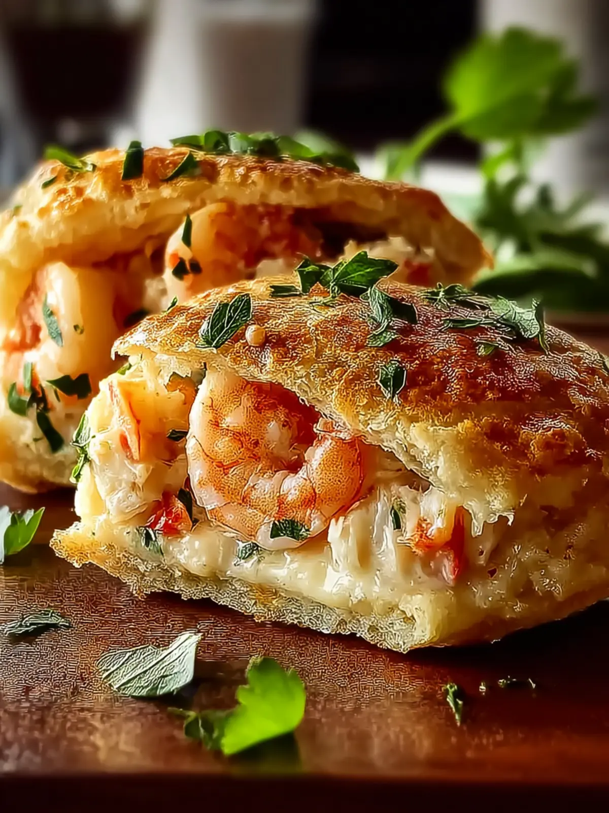 Delicious seafood stuffed biscuits filled with shrimp and crab, perfect for a savory snack or meal.