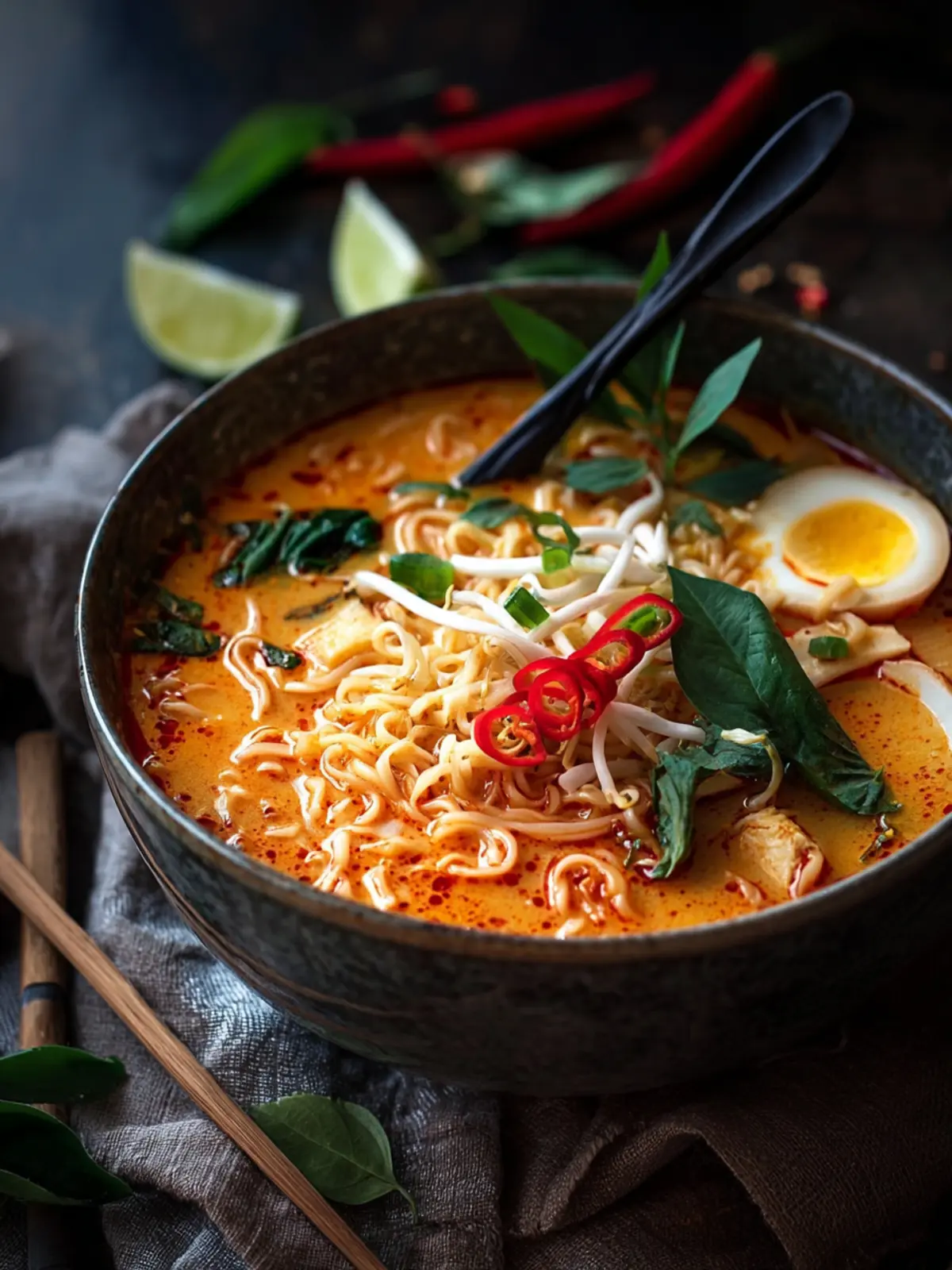 A delicious and spicy Thai coconut noodle soup that is easy to prepare and perfect for any occasion.