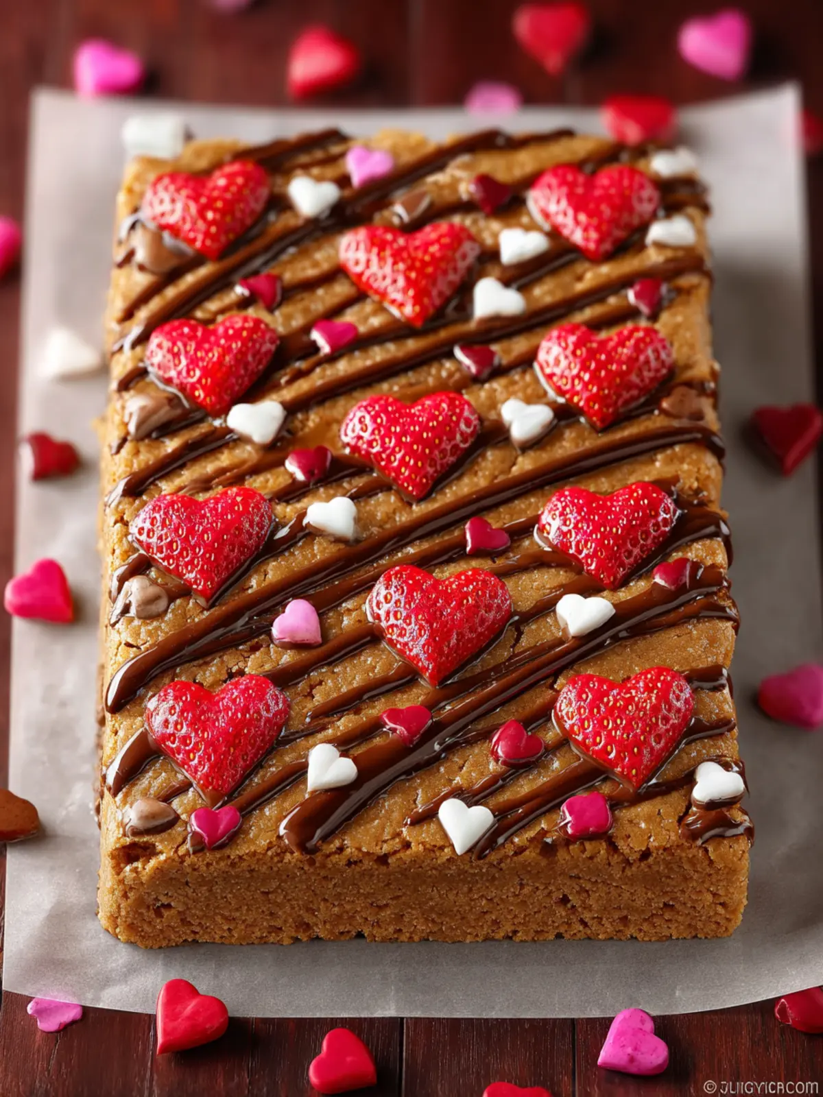 Nothing says Valentine’s Day like a sprinkle of colored sugar or heart-shaped confetti sprinkles on top of your bars. This charming addition not only enhances their appearance but also contributes a delightful crunch to every bite.